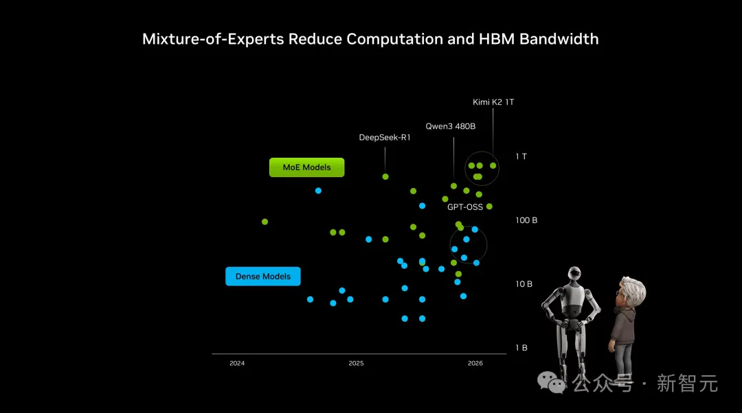 而且,DeepSeek-R1、Qwen3 和 Kimi K2 代表着MoE路线下顶级规模的尝试,仅需激活少量参数,大幅减少计算量和HBM显存带宽的压力。