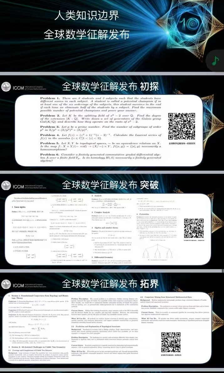 活动现场,上海市经信委、上海市人工智能行业协会携手上海数学与交叉学科研究院正式发布“人类知识边界:全球数学征解”。这是上海从“数学基础”到“智能应用”的创新闭环向全球发出的“英雄帖”,包含:初探——面向本科生的逻辑迷宫;突破——面向硕博的结构洞察;拓界——面向全人类的终极猜想。这三层挑战,对应着上海构建“数学—模型—产业”生态的决心。