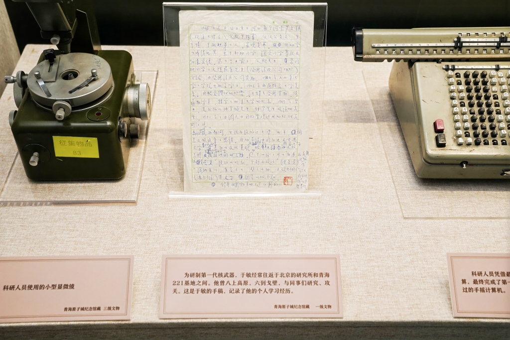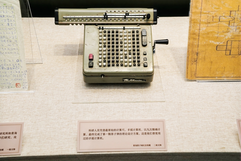 展览聚焦青海省海北州金银滩,遴选69件/套文物,包括于敏的手稿、邓稼先的履历表、第一颗原子弹爆炸时使用的程序时间指示器、手摇计算机等数件国家一、二级文物,以及反映中国核工业发展史、国营二二一厂厂史的珍贵历史文献资料。