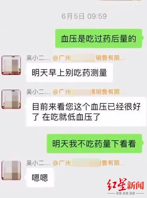 第4天,母亲在群里发送了血压数据,客服称“明天早上别吃药测量”“目前来看您这个血压已经很好了,再吃就低血压了”,母亲同意了。