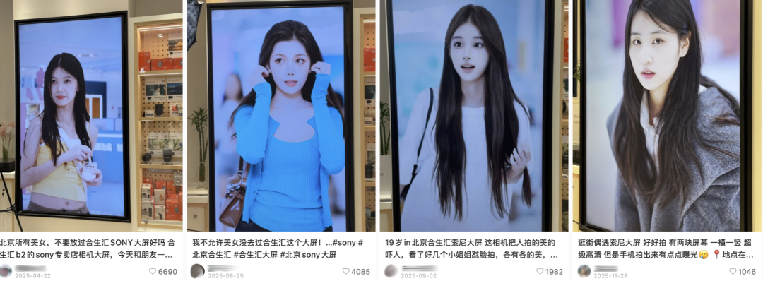 但你知道的,2025年,打工人开始强调“爱你老己”。为自己上大屏,免费拍出海马体,北漂听了一个比一个心痒。如今上大屏则变成全看腿,费腿程度主要看你距离北京合生汇B2索尼门店的距离。