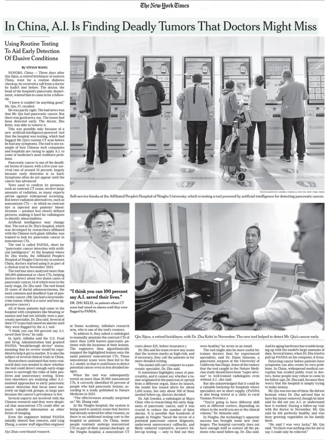 《纽约时报》整版报道:中国AI正在发现医生可能漏诊的致命肿瘤