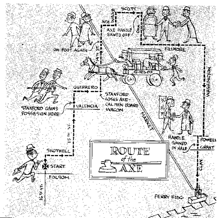 他们一路狂追斯坦福学生,成功强夺了斧头,并把它当战利品带回伯克利,仿佛打赢了湾区中世纪战争。