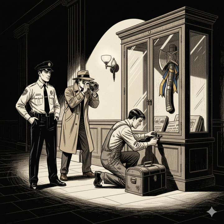 提前踩点:观察安保路线、计算换班时间,把偷斧头当工程项目做。