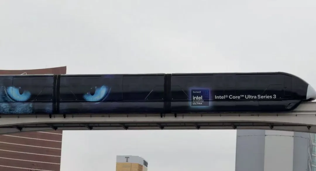 参展商们争夺最佳广告位战况焦灼,海信、TCL在展馆门口的大广告牌都很醒目,追觅巧妙地占据了几个入口广告位。英特尔、联想、谷歌Gemini等承包了Sphere地标,英特尔还给单轨换上了第三代酷睿Ultra的皮肤。
