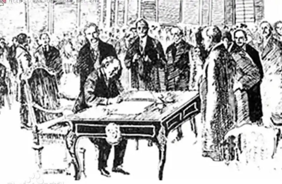 1918年,德国宣布战败投降。同年11月11日,德法两国代表在法国东北部的贡比涅森林雷道车站的一节火车车厢里签订了《贡比涅森林停战协定》(也叫《康边停战协定》),第一次世界大战宣告结束。