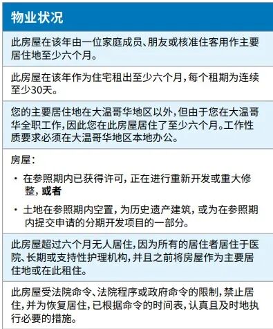 豁免房屋空置税的物业状况如下: