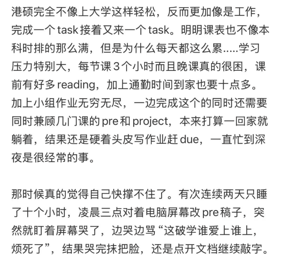 有人把读港硕的痛苦形容为“能真实体验到的濒死感”。