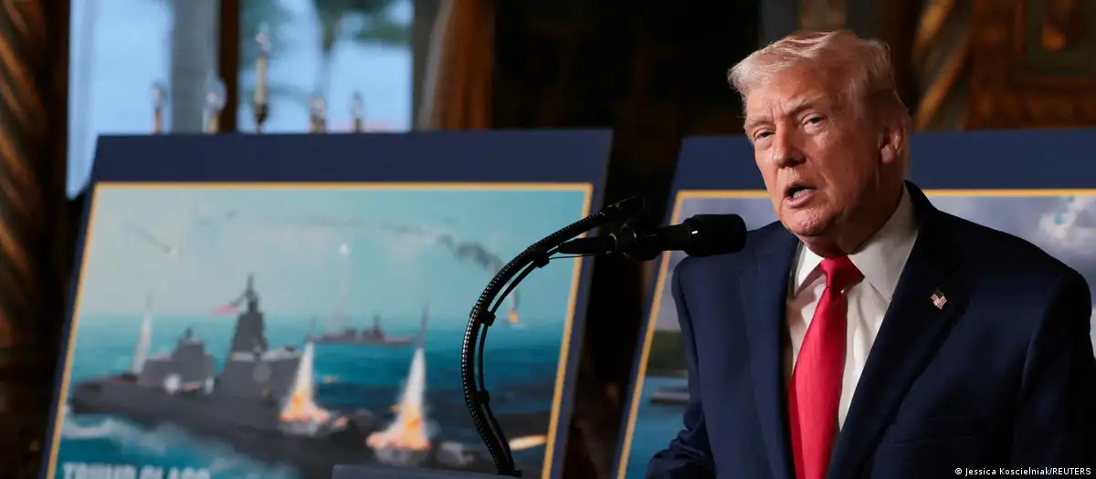 美国总统特朗普2025年12月22日在海湖庄园宣布,将打造包含“特朗普级”战舰的“新黄金舰队”(Golden Fleet)。图像来源: Jessica Koscielniak/REUTERS
