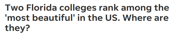 《Travel + Leisure》杂志近日公布了全美最美大学校园排行榜,佛罗里达州有两所高校上榜,与康奈尔大学、普林斯顿大学等知名学府一同入选。