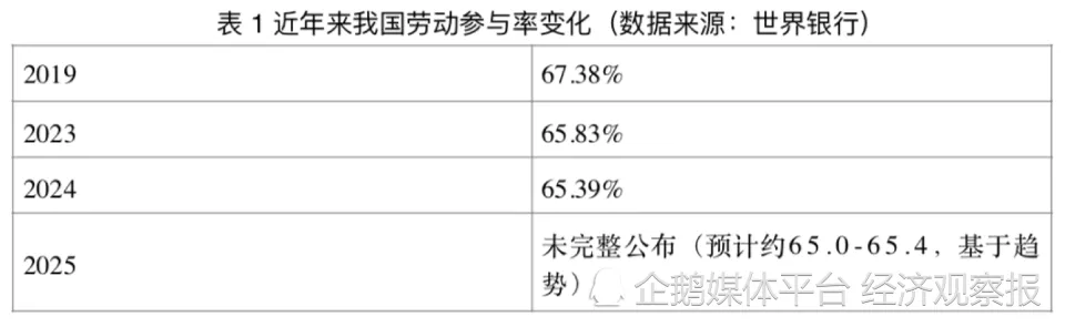与疫情前(以2019年为例)对比,2023—2025年劳动参与率整体下降约1.9—2.3个百分点。按照当前中国15岁及以上人口规模测算,劳动参与率每下降1个百分点,意味着约700万—800万人退出或暂时退出劳动力市场。由此推算,近几年劳动参与率的回落,对应的潜在劳动力规模收缩在1500万—1800万人左右。这部分人群并非全部失业,而是以延迟就业、继续求学、全职照护、被动返乡等形式,阶段性地脱离了劳动力市场。