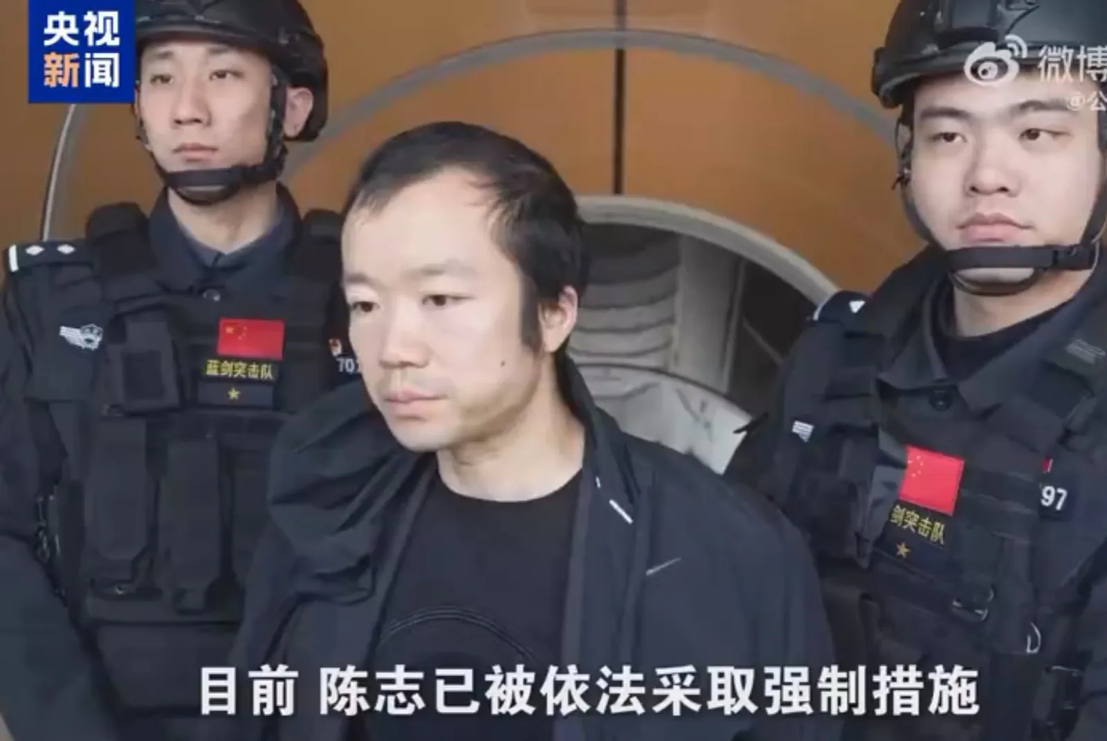 《央视新闻》也揭露陈志遭押解回中国画面,他双手上铐由中国南方航空班机载回国,下机前被换上蓝色上衣、头戴黑色头套,下机后由公安“拿掉”头套露出他狼狈画面;而现场公安不敢大意,搭配枪枝严加戒备。