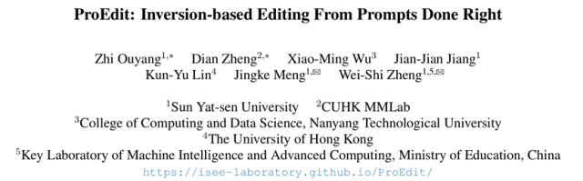近日,来自中山大学iSEE实验室、香港中文大学MM Lab、新加坡南洋理工大学、香港大学的研究团队发布了最新研究成果ProEdit。