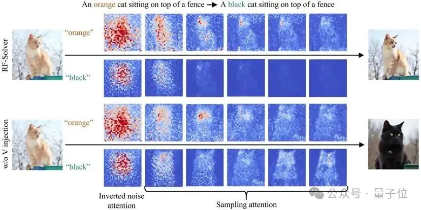 结果就是:现有方法下,你想把“橙色猫”改写成“黑色猫”,AI可能还是给你一只橙色猫。而去除源图像注意力注入机制,又难以保持背景和非编辑属性的一致性。