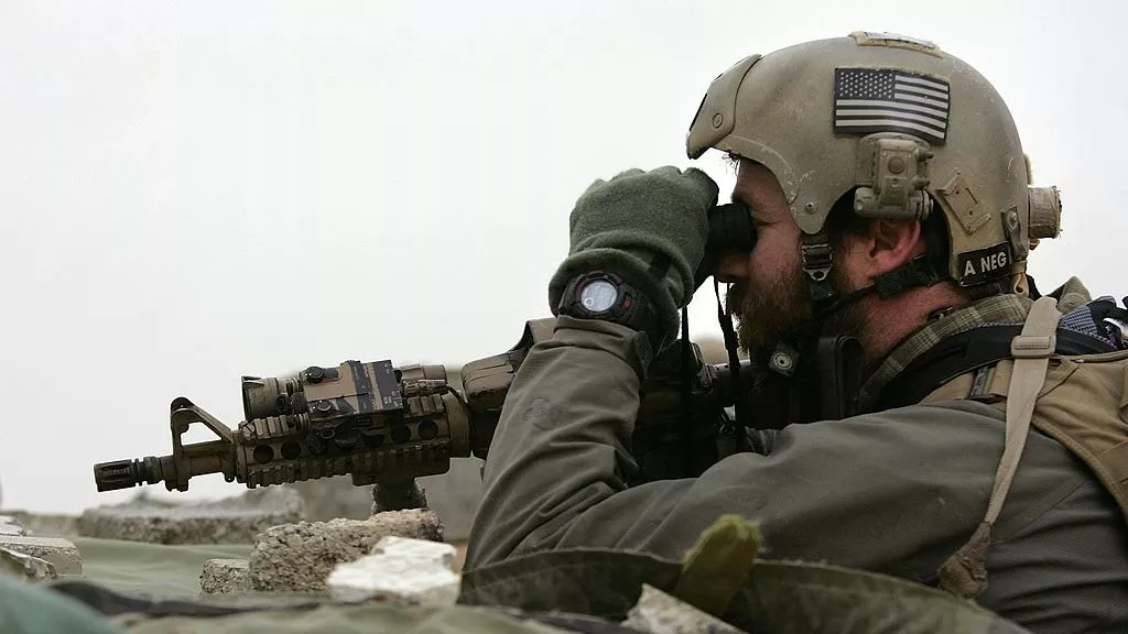 图为2007年1月21日,美国海豹突击队在伊拉克安巴尔省(Anbar)拉马迪(Ramadi )的一座屋顶上进行监视行动。(Getty)