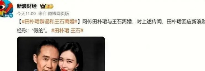 有意思的是,作为另一当事人的王石,其回应却显得模糊。 有记者尝试联系他,得到的回复也是“传闻是假的”,但这更像是身边工作人员对外的统一口径。 王石本人并未像田朴珺那样,主动地、公开地在个人平台上发声澄清。 这种回应节奏和力度的差异,又给外界留下了一丝琢磨的空间。 这已经不是他们第一次被传婚变了。 早在2023年,类似的传闻就闹过一波,当时也是田朴珺站出来辟的谣。 如今历史重演,辟谣本身似乎也成了他们公众生活的一个固定环节。