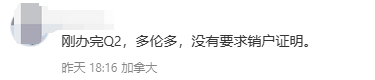 “刚办完Q2,多伦多,没有要求销户证明。”