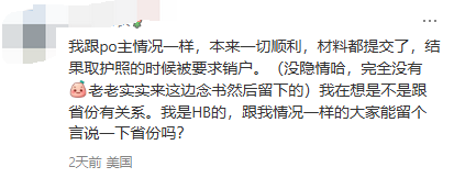 “我跟po主情况一样,本来一切顺利,材料都提交了,结果取护照的时候被要求销户。(没隐情哈,完全没有老老实实来这边念书然后留下的)我在想是不是跟省份有关系。我是HB的,跟我情况一样的大家能留个言说一下省份吗?”