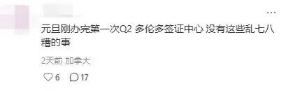“元旦刚办完第一次Q2,多伦多签证中心,没有这些乱七八糟的事。”