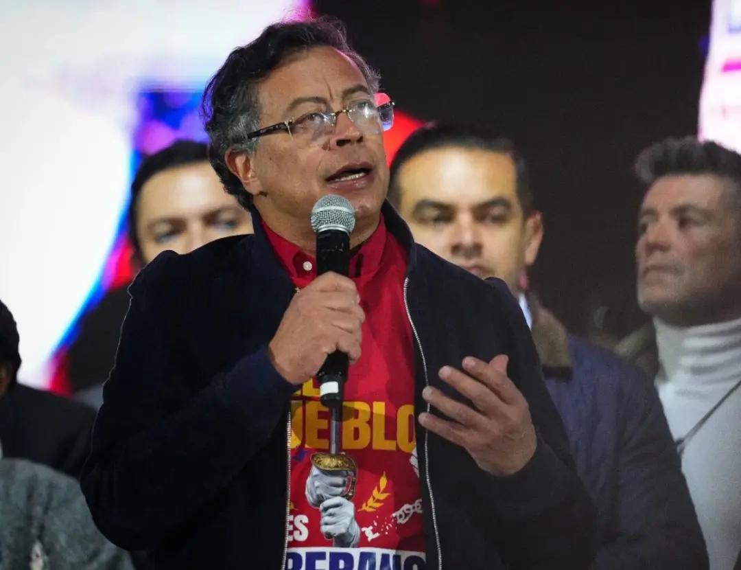 2025年10月24日,哥伦比亚总统佩特罗在首都波哥大的玻利瓦尔广场发表讲话。 新华社发(安德烈斯·莫雷诺摄)