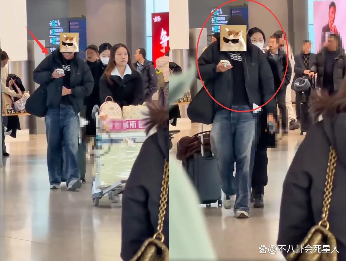李嫣自己推着一个大行李箱,一路跟随这名年轻的男性友人,两人虽然全程无交流,可却默契十足。