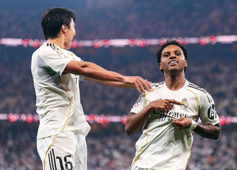 银河战舰此役带球入场,巴尔韦德不到2分钟的任意球世界波,就帮助皇马取得了1-0的梦幻开局,下半场巴尔韦德再次送出助攻,完成传射建功的好戏,罗德里戈的进球,将比分改写为了2-0.虽然瑟洛特很快追回一球,但众志成城的皇马,顶住了对手的反扑,以2-1笑到了最后。