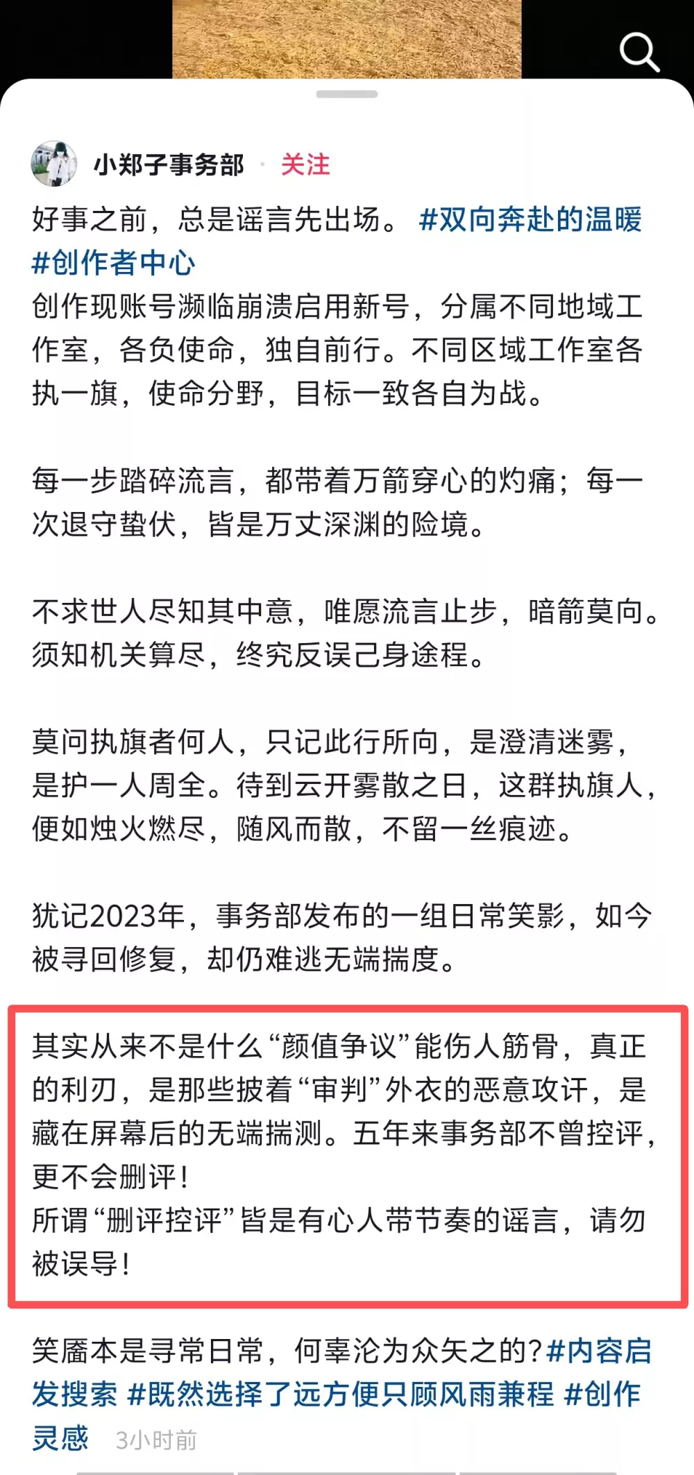 面对网友对她容貌的讨论,郑爽在1月8日做了回应。文字风格依旧是大家熟悉的“爽言爽语”,看得非常地费劲,大意是说这几年一直流传着各种谣言,她遭受了很多恶意的攻击和揣测,但是她的团队从来没有删评控评。