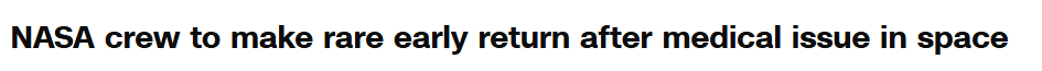 ■ ISS太空人健康出问题,NASA首度医疗撤离