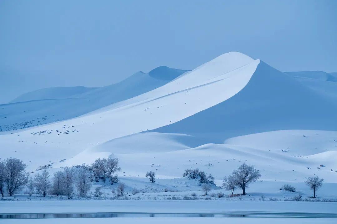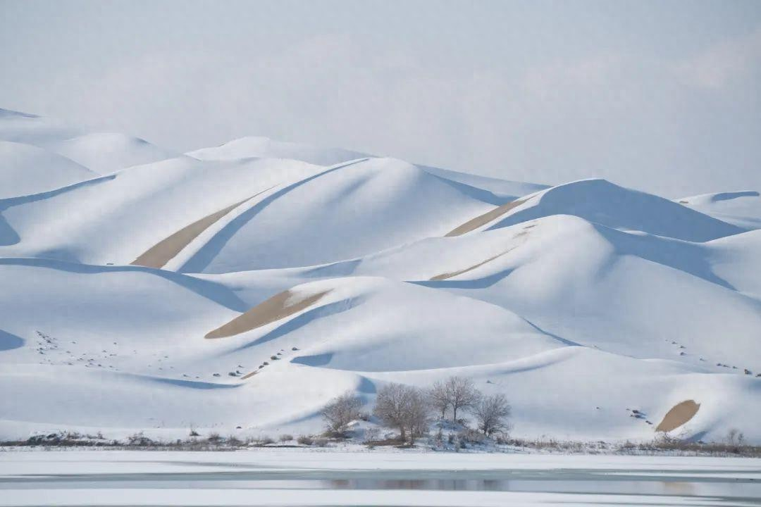 可你想象一下这场景那个被誉为“死亡之海”的中国最大沙漠,在寒风中悄然结出了银装,沙丘之上厚厚白雪与金色沙脊交织成一幅天地对撞的画面。