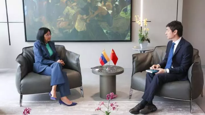 罗德里格斯介绍称,“我们与中华人民共和国驻委内瑞拉大使蓝虎举行了友好会晤,并就他谴责绑架委内瑞拉总统尼古拉斯·马杜罗和第一夫人西利娅·弗洛雷斯以及侵略委内瑞拉的行径表示衷心感谢。我们赞赏中国在强烈谴责严重违反国际法和侵犯委内瑞拉主权行为方面所持的坚定立场”。