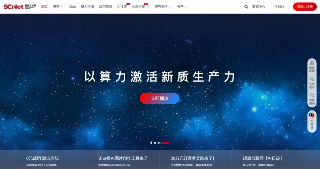 而随着大模型技术的爆发式增长,全社会对智能算力的需求呈指数级攀升。国家超算互联网也已成为中国应对人工智能浪潮的战略发展基座,为千行百业的智能化转型提供普适性的动力支撑,让最前沿的算力成为开发者“触手可及的生产力”。
