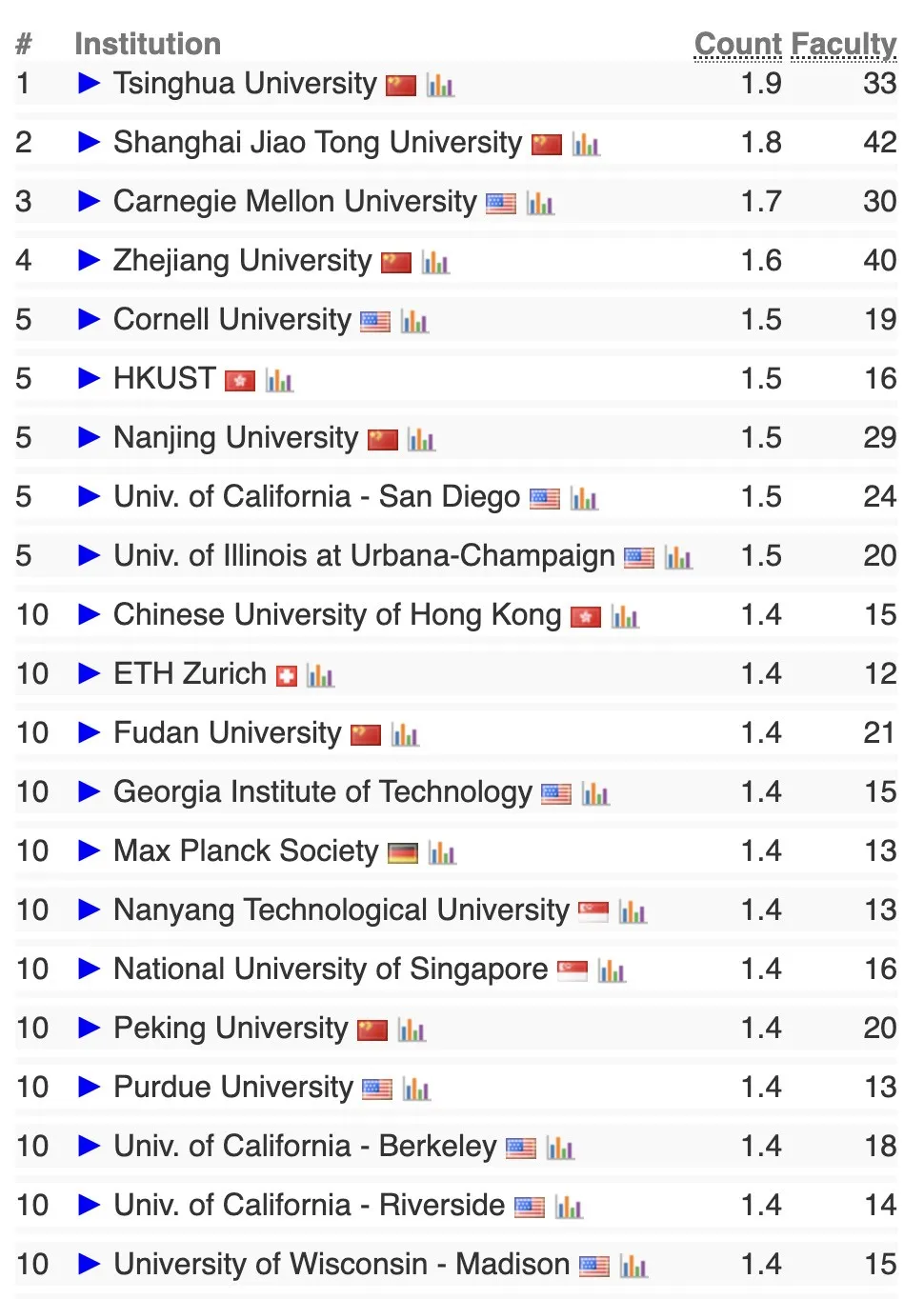 前十名中中美占据8席(含并列),前五名中国高校包揽4席,打破以往欧美高校垄断格局;