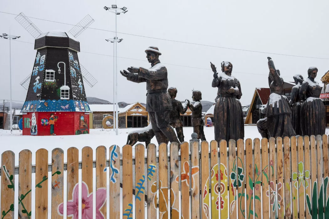 这个由中国政府设立、名为恩和的“俄罗斯族民族乡”,名义上是为了保护中国的俄罗斯族这个稀少的少数民族的传统习俗与身份认同。这里到处都是白桦树、厚厚的积雪、西伯利亚风格的木屋、西里尔字母和伏特加。