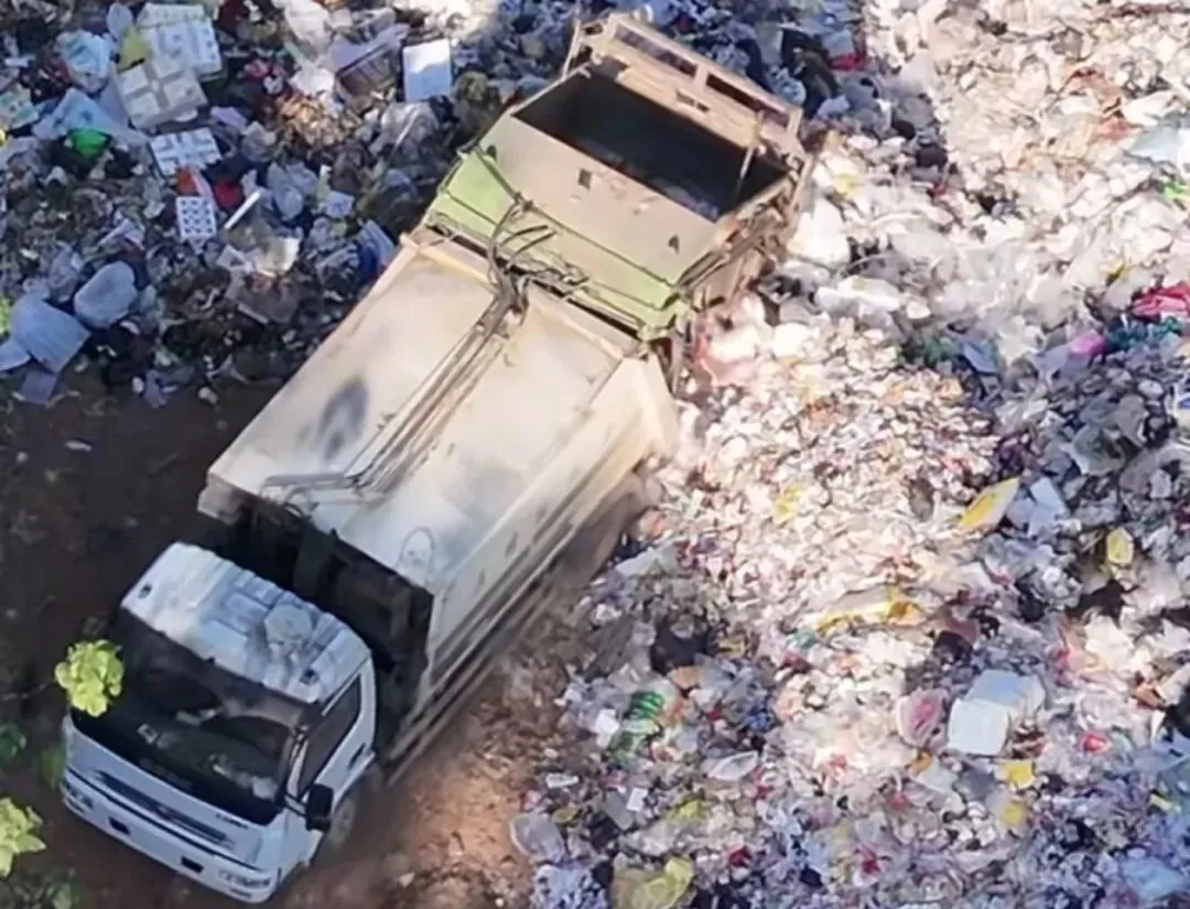 在当地,他们根据网友提供的线索,追踪到镇上一家垃圾回收站,垃圾车收走各站点的垃圾后,拐上了通往天坑的山路。符正用航拍记录下垃圾倾倒的过程。