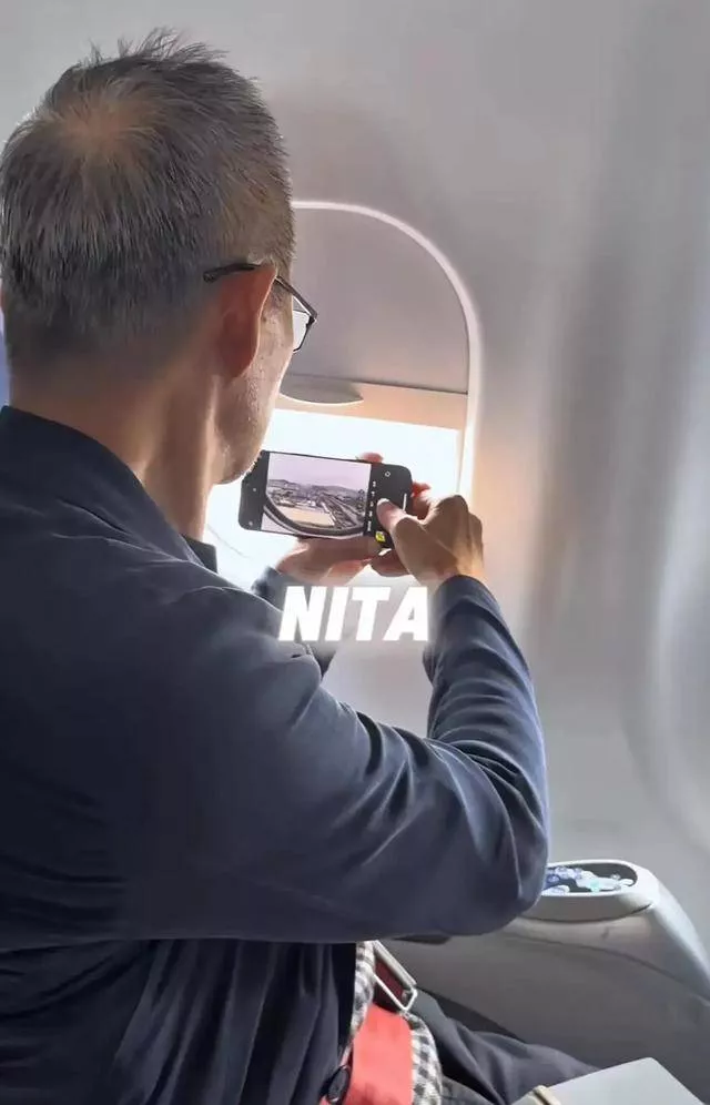 王石坐在靠窗的位置,醒来后可能发现了美景,掏出手机对着窗外一顿拍。
