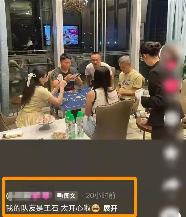 他跟一群好友打牌聊天,其他几个人看样子都是年轻人,只有王石一头白发。