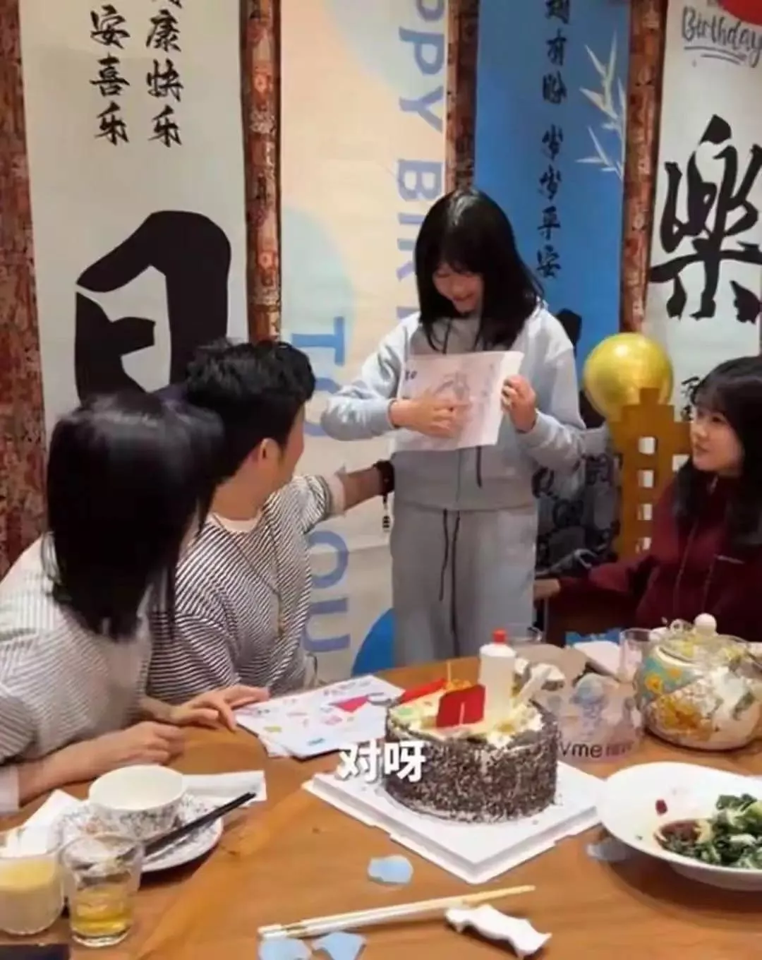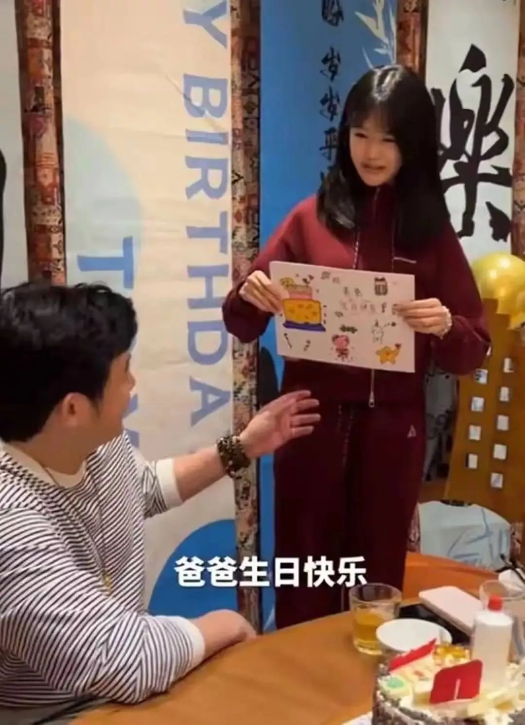 姐妹俩为了给爸爸过生日,真是下血本了。这个茅台酒看着很逼真,可能不是装饰那么简单吧。