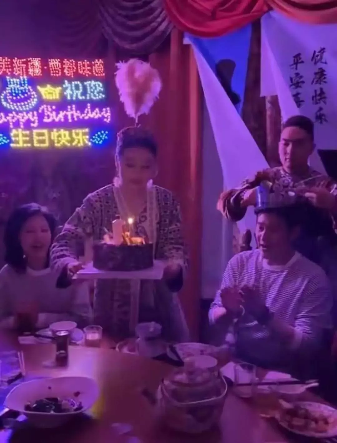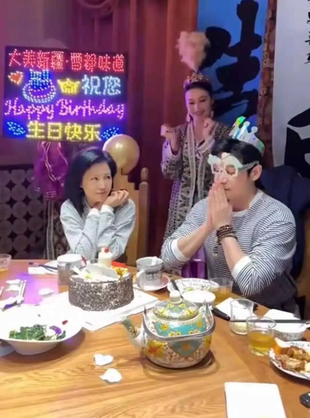 除了家人之间的庆祝,还有好朋友们到场为他庆生。