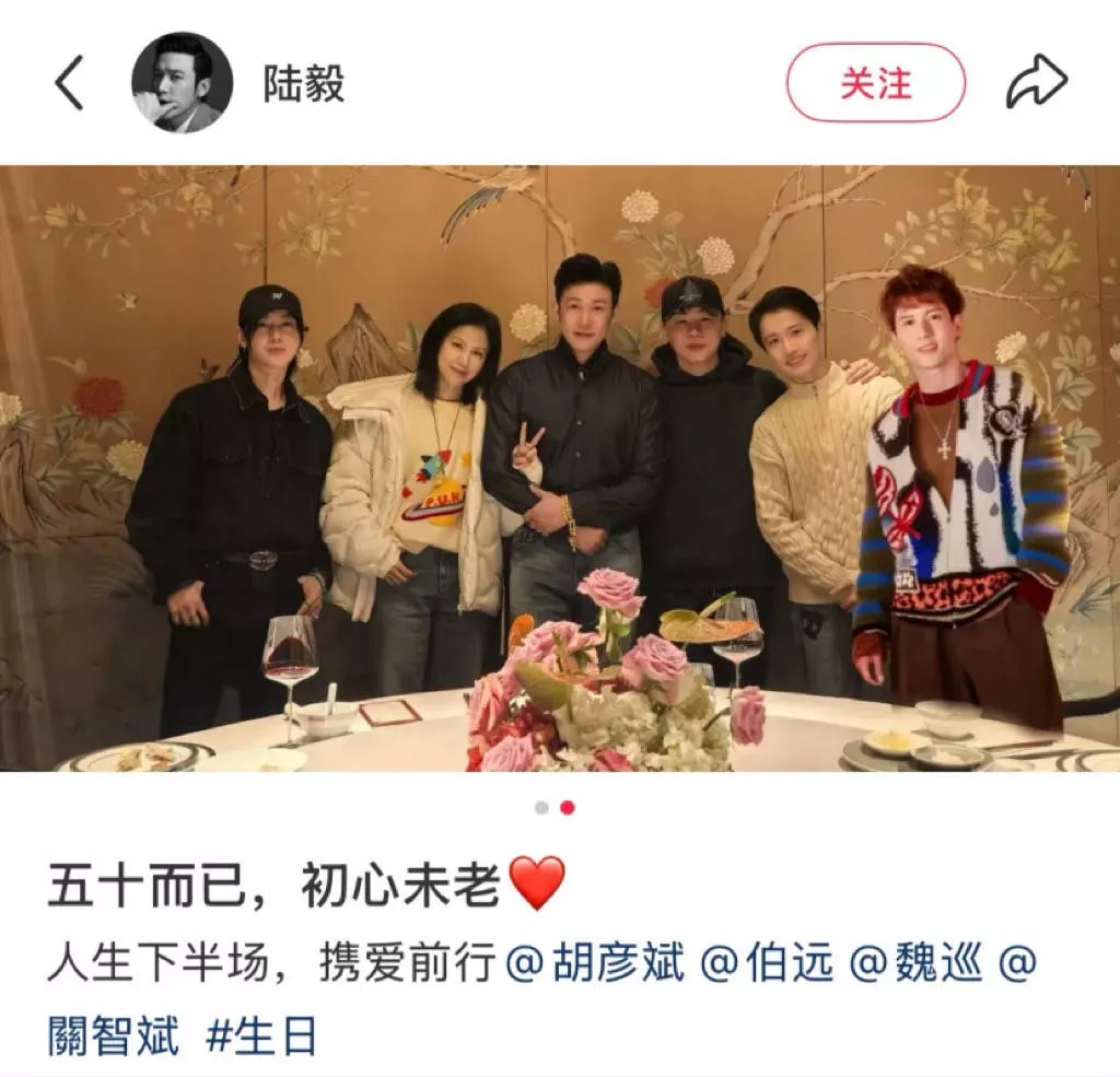 在圈子里,陆毅有很多好朋友。去年生日除了Ace组合到场,还有林志颖也来了,他们都比出5的手势,特别快乐。