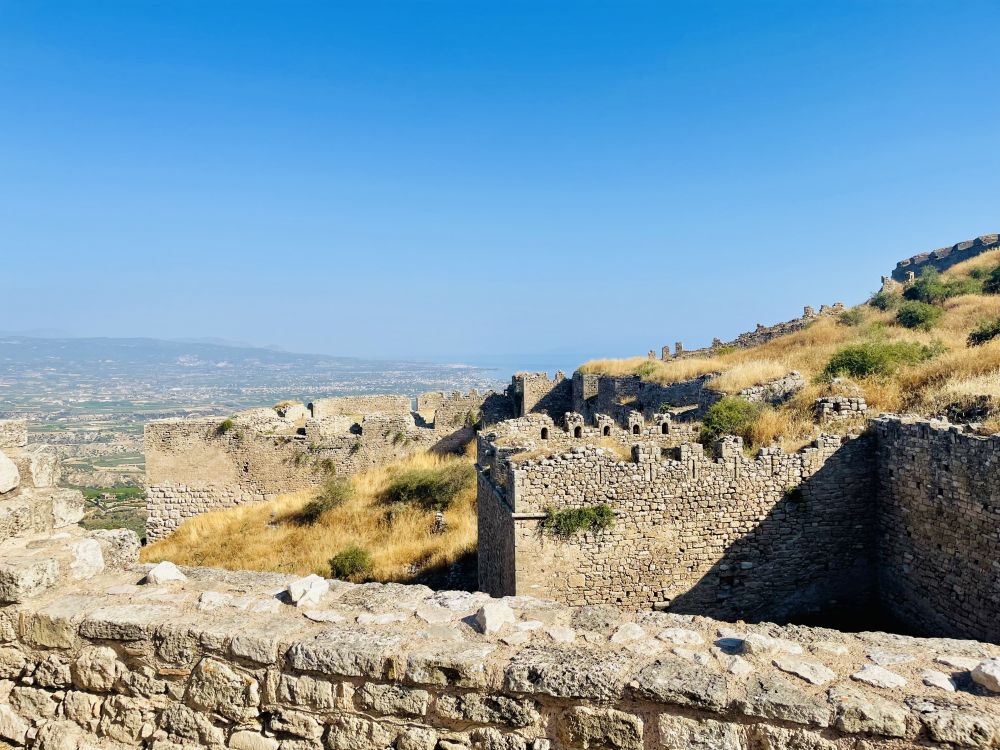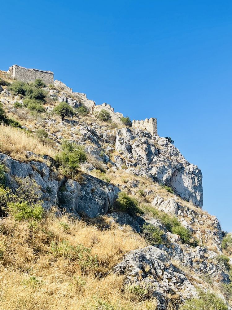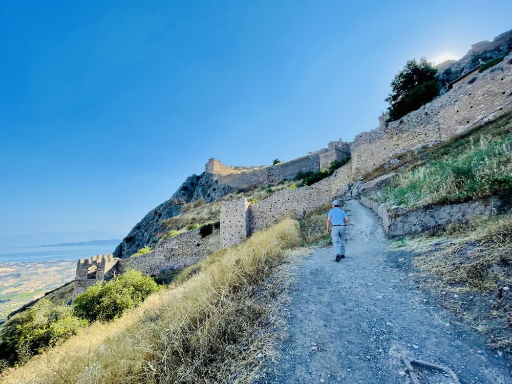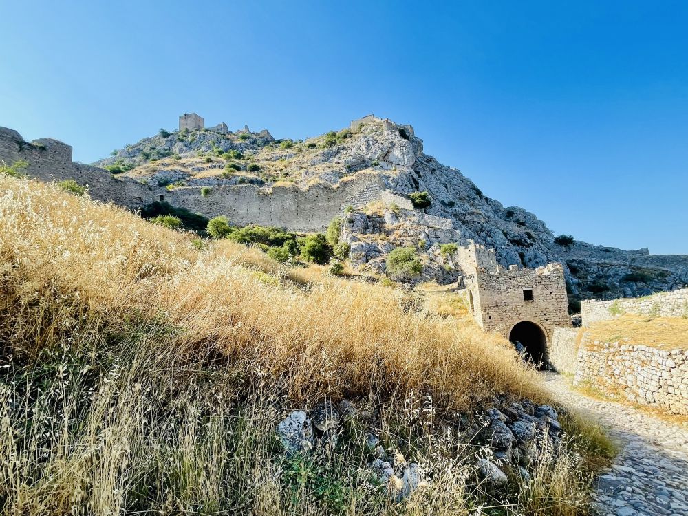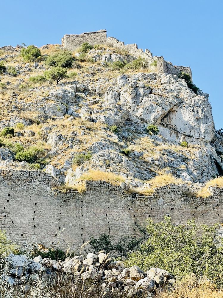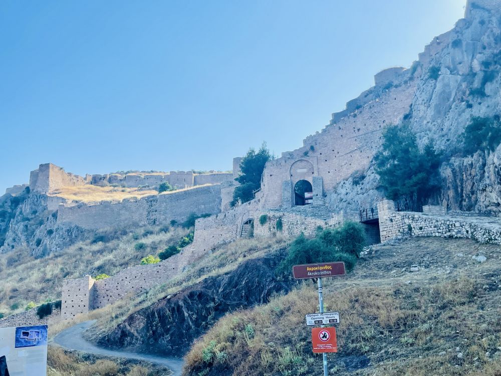 科林斯卫城是所见过卫城中最险峻、雄壮的一座,从山脚仰望,它的围墙仿佛直接从岩石中生长出来,与悬崖融为一体。走在卫城遗址给人的震撼感至今难忘;当平原与城市皆已失守,科林斯卫城仍能独立存在——它并非象征性的高地,而是守卫地峡的最后依托。