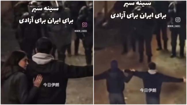 2026年1月,伊朗情侣肩并肩迎向枪口,感动中国网友。(网络视频截图)