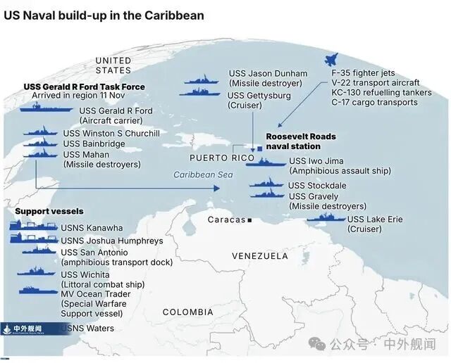 “南方之矛行动”是以美国海军为主力,美国空军和美国海岸警卫队配合,打着“打击贩毒集团”的名义开展的长时间大规模公开性战略部署,实现对委内瑞拉的海上封锁,最终达到干预委内瑞拉内政的结果。
