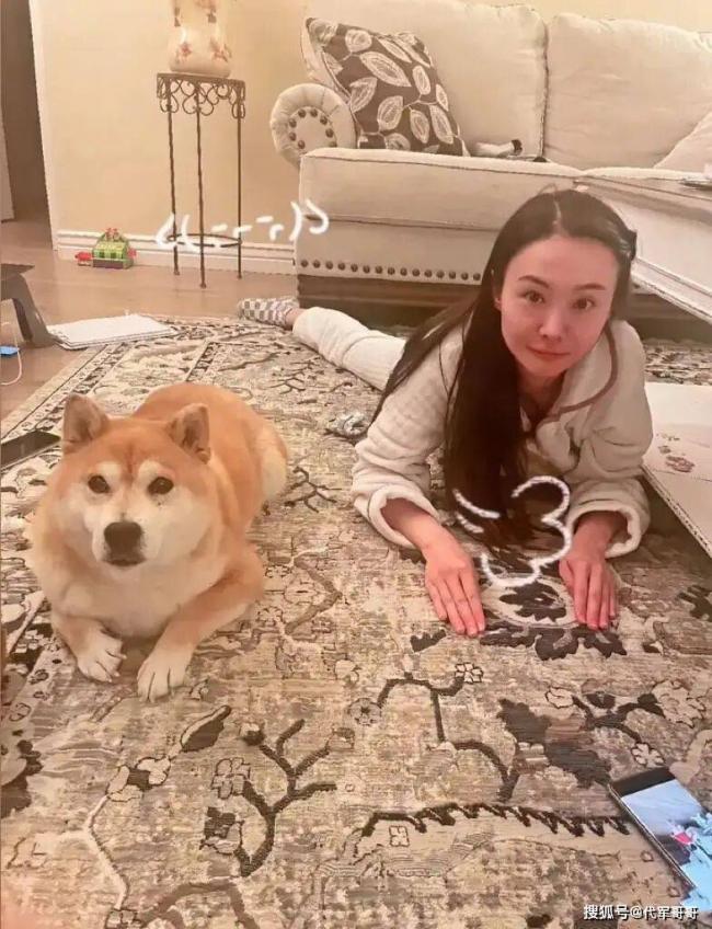 从曝光的近照来看,郑爽此次以素颜出镜,穿着宽松的白色睡衣裤,头发随意披散在肩头,正趴在客厅的地毯上与一只宠物犬互动,动作亲昵地模仿狗狗姿态卖萌,画面尽显闲适。
