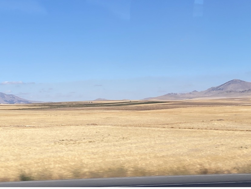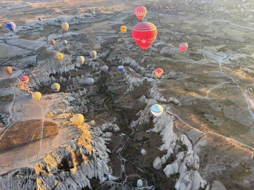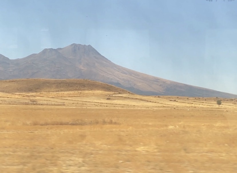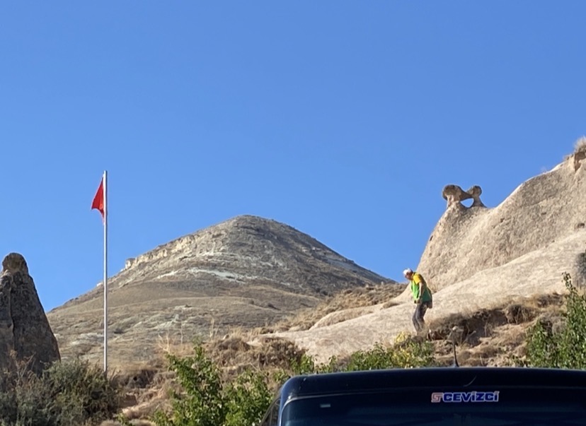 2025年9月21日,我们一行16人的亲友团坐乘坐的中巴在土耳其卡帕多奇亚(Cappadocia)的高原上行使。卡帕多奇亚,在波斯语中是指美丽的马的国家,那是想说骏马在火山前面的高原上奔驰更加威风凛凛吗?