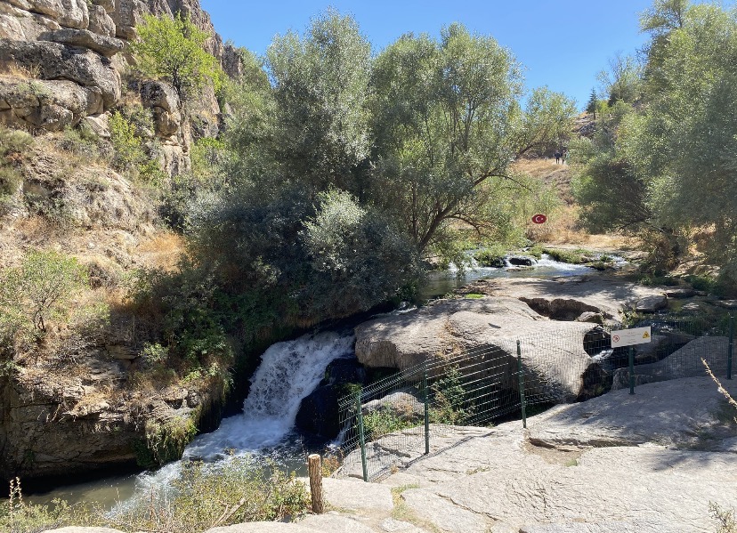 在洞穴酒店住了两天的我们,曾沿着一条河远足,潺潺的河水、绿绿的树木让人的心情极为放松。沿途,我看到岩石上有许多洞穴,里面还有晃动的人影,我知道那是如我一样的游客攀援上去一探究竟。