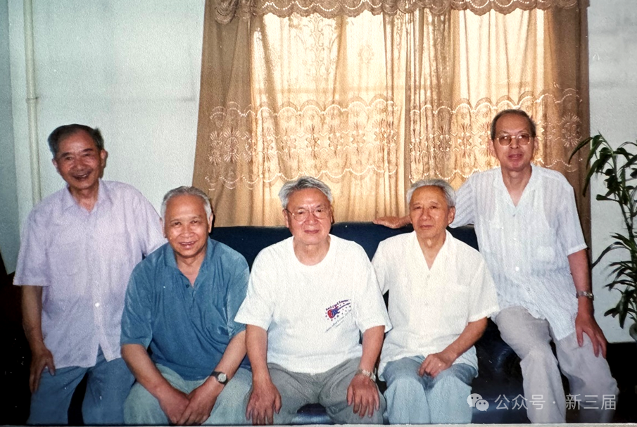 《胡耀邦》传记5位主要撰写人。左起:李公天、张定、张黎群、黄天祥、严如平,摄于2000年7月19日