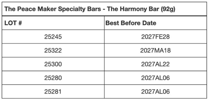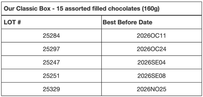 据悉,总部位于新斯科舍省的巧克力公司Peace by Chocolate,正在召回两款巧克力,名为The Harmony Bar 和 Our Classic Box(15颗混合夹心巧克力)。这两款产品均在9月7日至12月3日期间的Costco官网(Costco.ca)上销售。