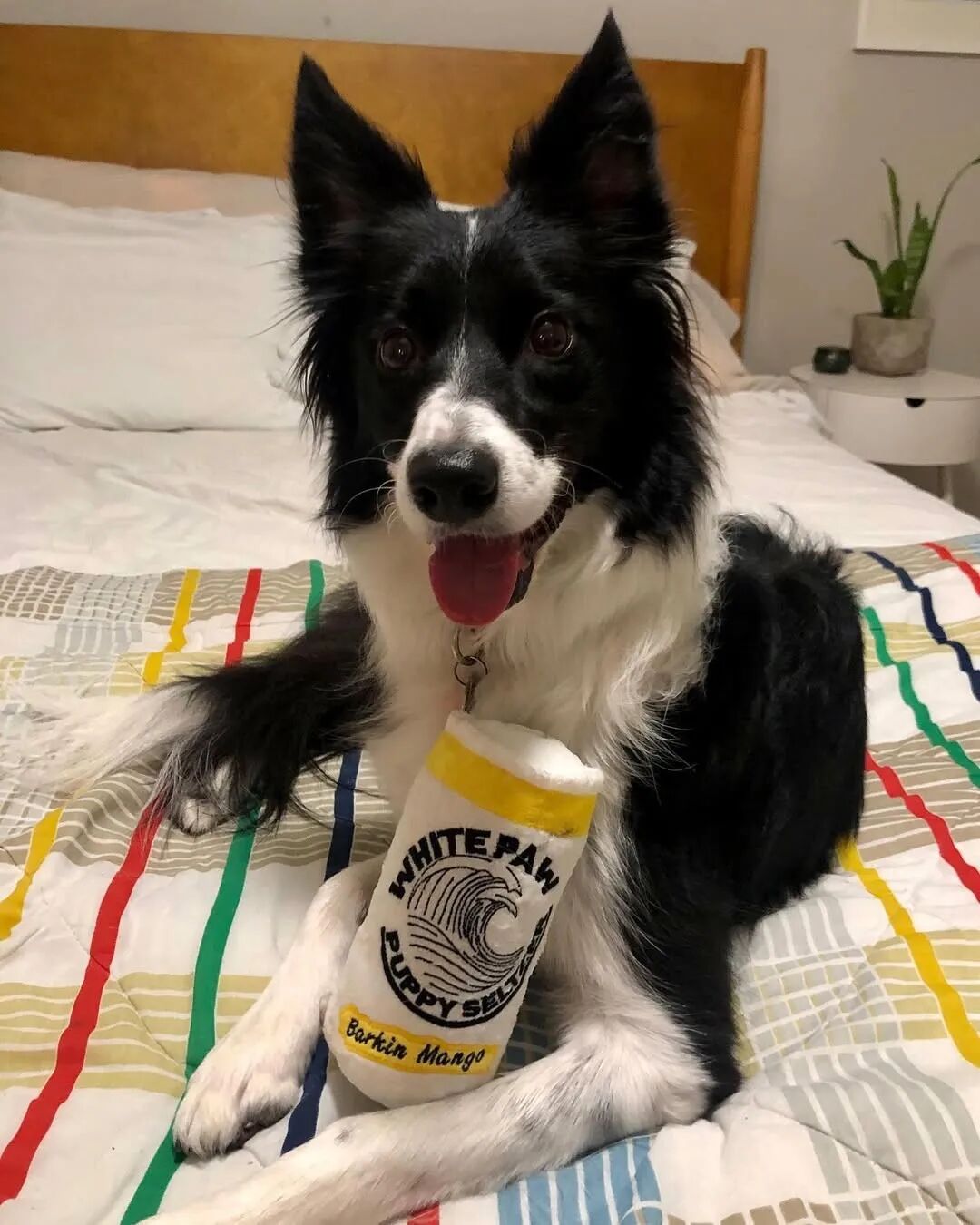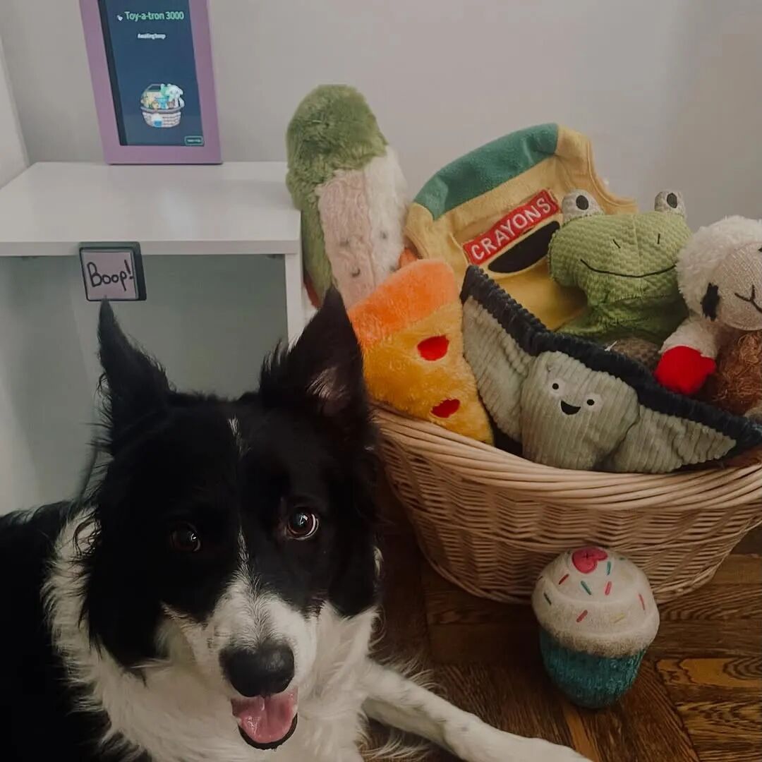 牛油果玩偶是Basket最喜欢的玩具之一,当它的两位铲屎官在家里讨论要不要去买点牛油果时,它就会冲回屋里,屁颠屁颠地把牛油果叼过来。有时候,它也会叼来其他一些与日常用品同名的玩具。