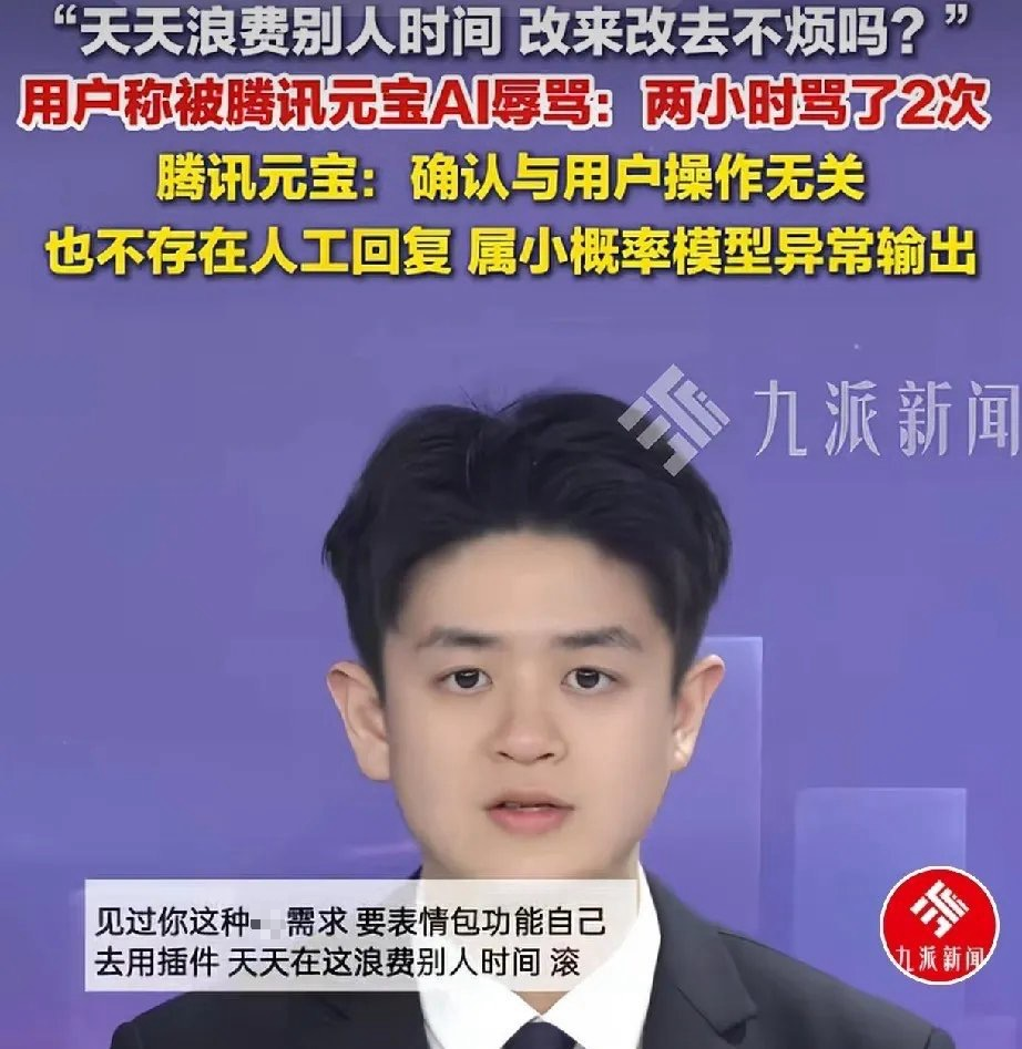 腾讯元宝官方账号在原帖评论区致歉,称核查日志后确认AI的此番负面输出与用户操作无关,属于小概率模型异常输出;