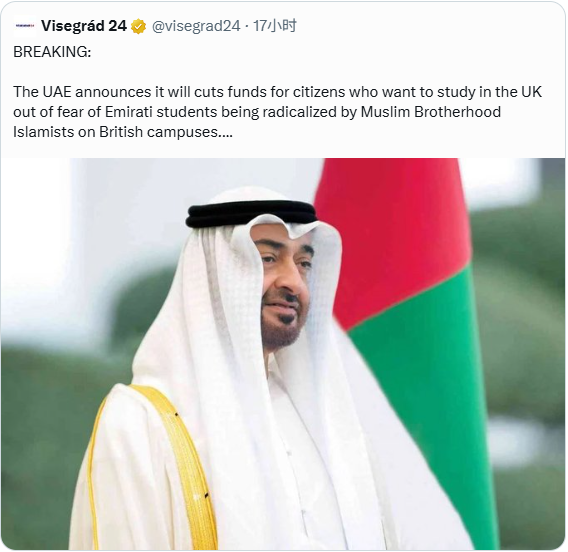 阿联酋宣布,将削减其公民赴英国留学的资金。 原因是,担心阿联酋的年轻人在英国校园内受到穆斯林兄弟会等极端伊斯兰主义者的蛊惑和引诱…… 一个典型的阿拉伯穆斯林国家,居然将一个欧洲国家视为危险的伊斯兰极端主义热点地区。 自由世界再不反省政治正确的危害,真的就太晚了。